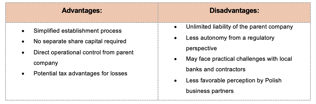 Some Dutch companies choose to operate via a branch office of the Dutch legal entity rather than forming a separate Polish company. A branch office (oddział) is an extension of the foreign company, conducting business in Poland in the name of that foreign entity. In practice, branches have been much less common than subsidiaries – branches accounted for only about 1% of foreign business entities in Poland.